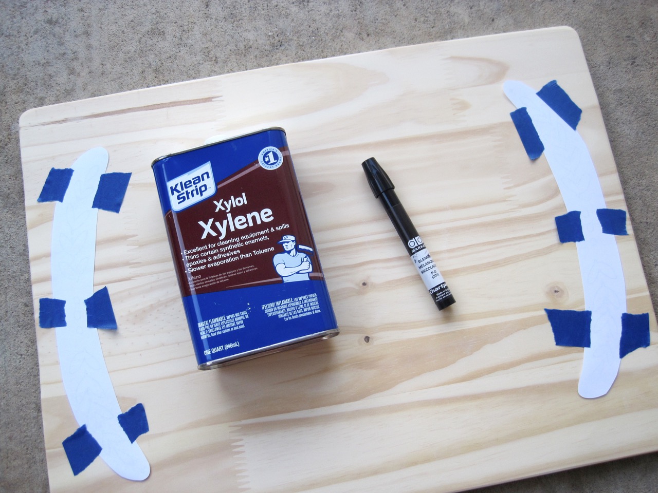 If wood-burning your design, print using a laser printer. Cut design out and center and place face-down against board. Tape in place.