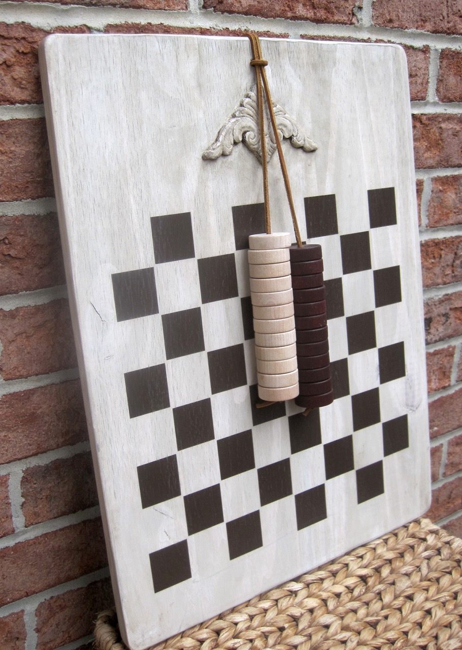 Your options are endless when it comes to making your own board (check samples at bottom). In these instructions you will need to choose what size board you want to make, how you’re going to finish your board (i.e. paint, stain, keep natural), if you want an embellishment and if you want to use vinyl squares or paint your own on.