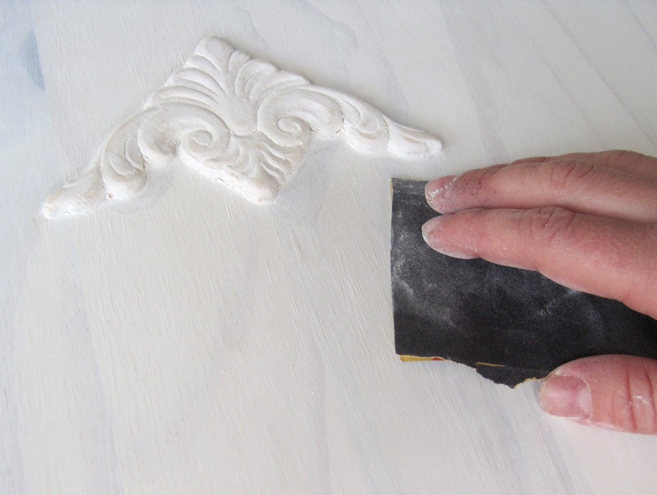 Added wooden applique, used “General Finishes” Whitewash Stain,