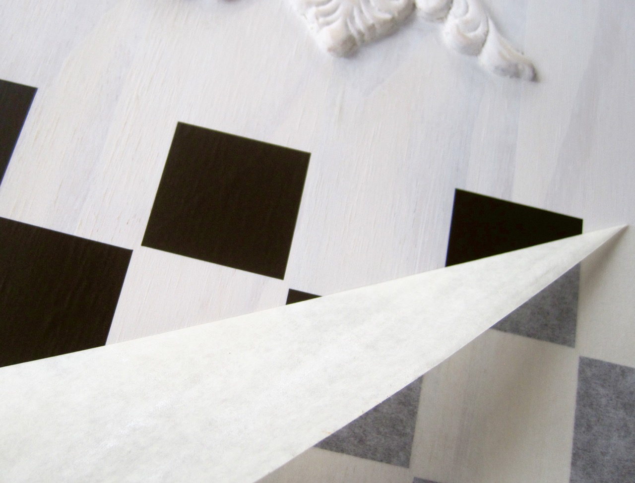 If using vinyl, peel squares from the backing and press over board. Make sure it’s centered on your board!