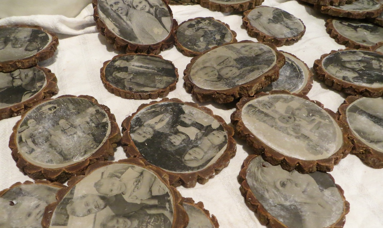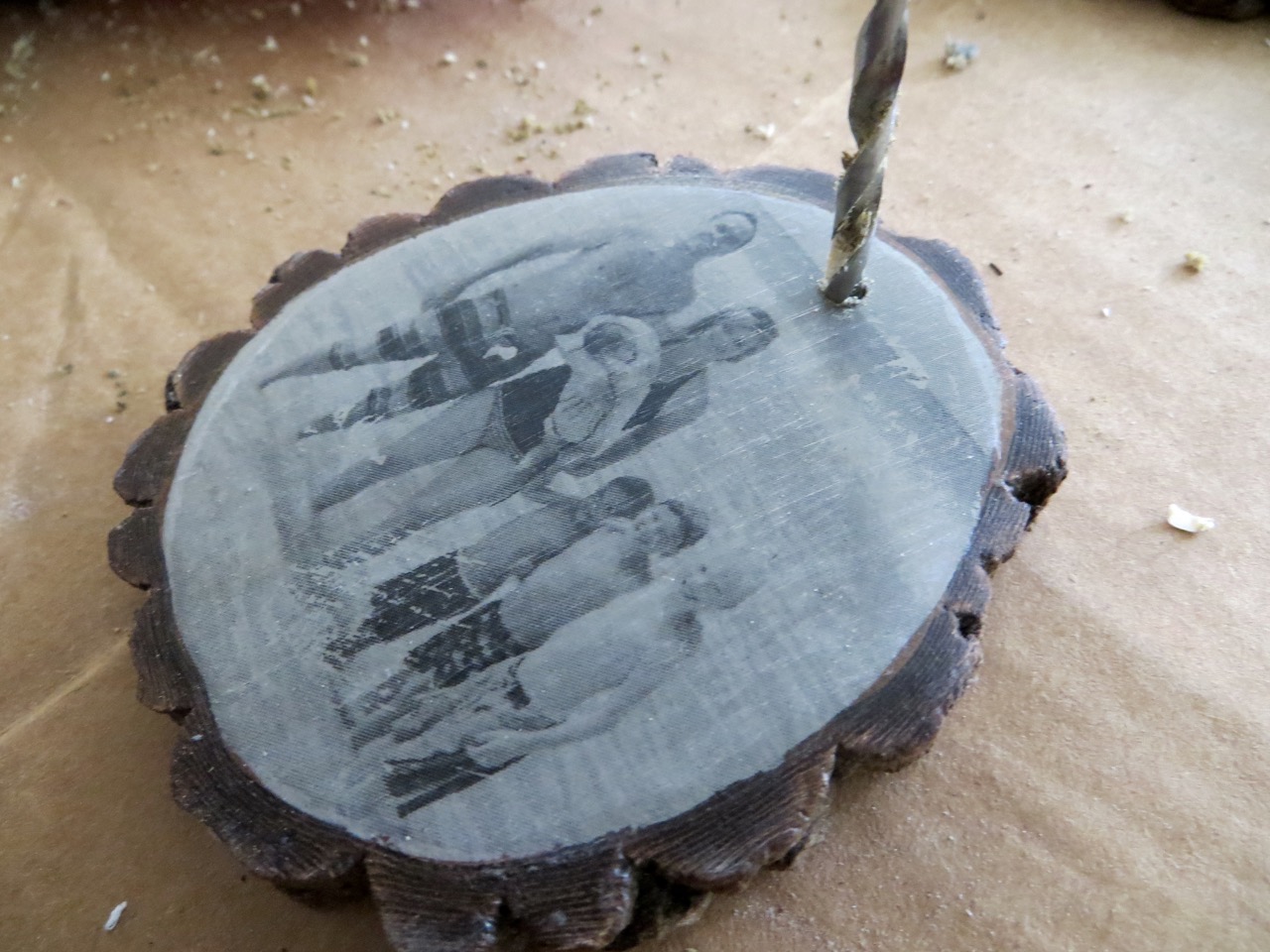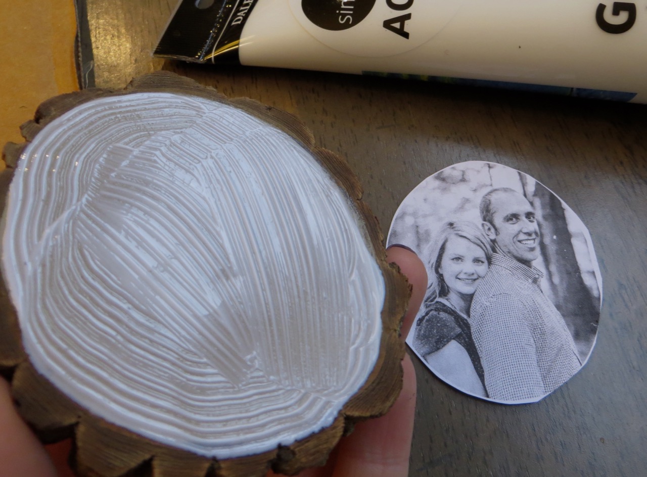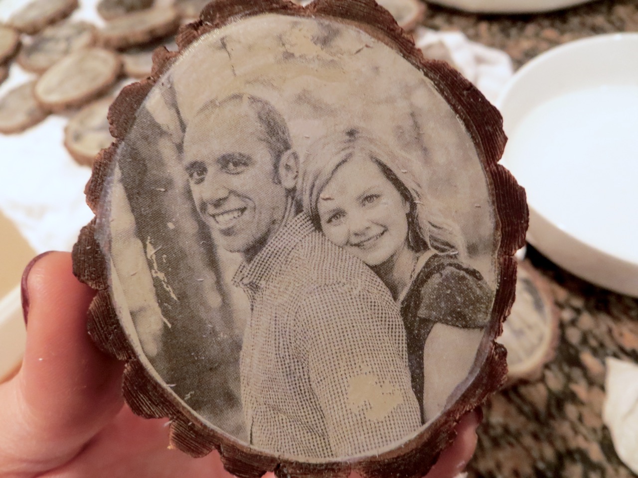 I’m going to show you how you can transfer photographs/images onto wood* slices for making your own ornaments. Because we live so far from family I really wanted to have ornaments that sparked memories for the kids. I probably overdid it by how many photographs I chose but I couldn’t help it! I made sure we had Grandparents, Great-Grandparents, Cousins and Aunts/Uncles of the kids’ to display along with pictures of our own little family. The kids love the ornaments and I catch them looking at them all the time.