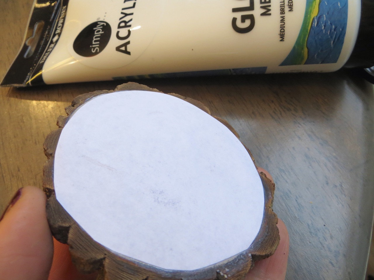 I press down in the center and move my finger around in a circle going outwards to avoid trapping bubbles. Press your paper down well – use something flat to roll across the top. Let dry for 4+ hours.