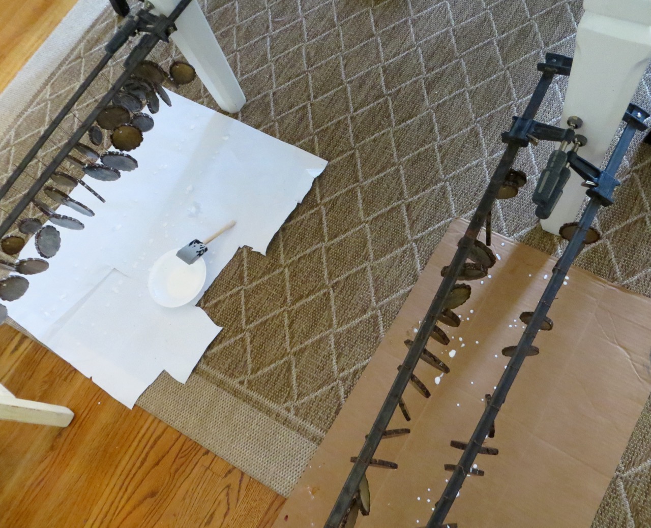 Hang ornaments to dry. I used bar clamps on my kitchen table legs! 😂