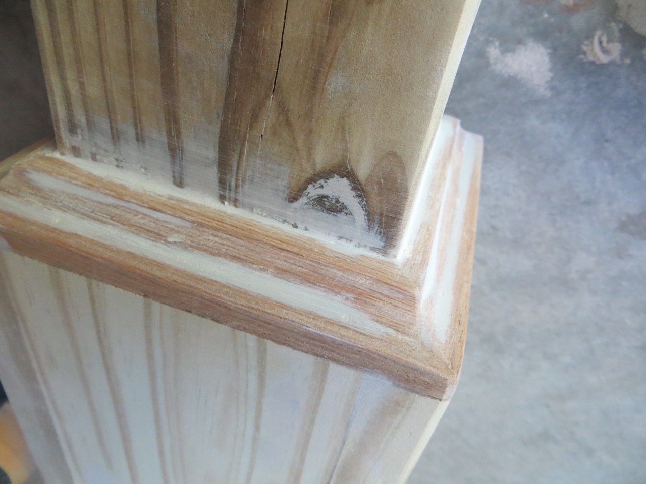 Now you’ll attach the 1×6’s that you ripped down to the other sides. Butter the post and the ends of the other boards with glue; align and nail just as the others.