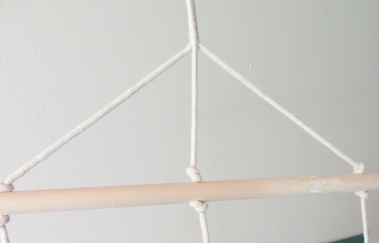 For the last touch, I made a loop on the end of the middle rope for hanging. I made it so I could easily undo and adjust the height of the mobile if needed later.