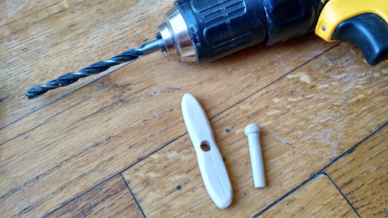 For your propeller, drill a hole in the front of one of the clothespins. Butter axle and inside of hole with glue and push propeller in.