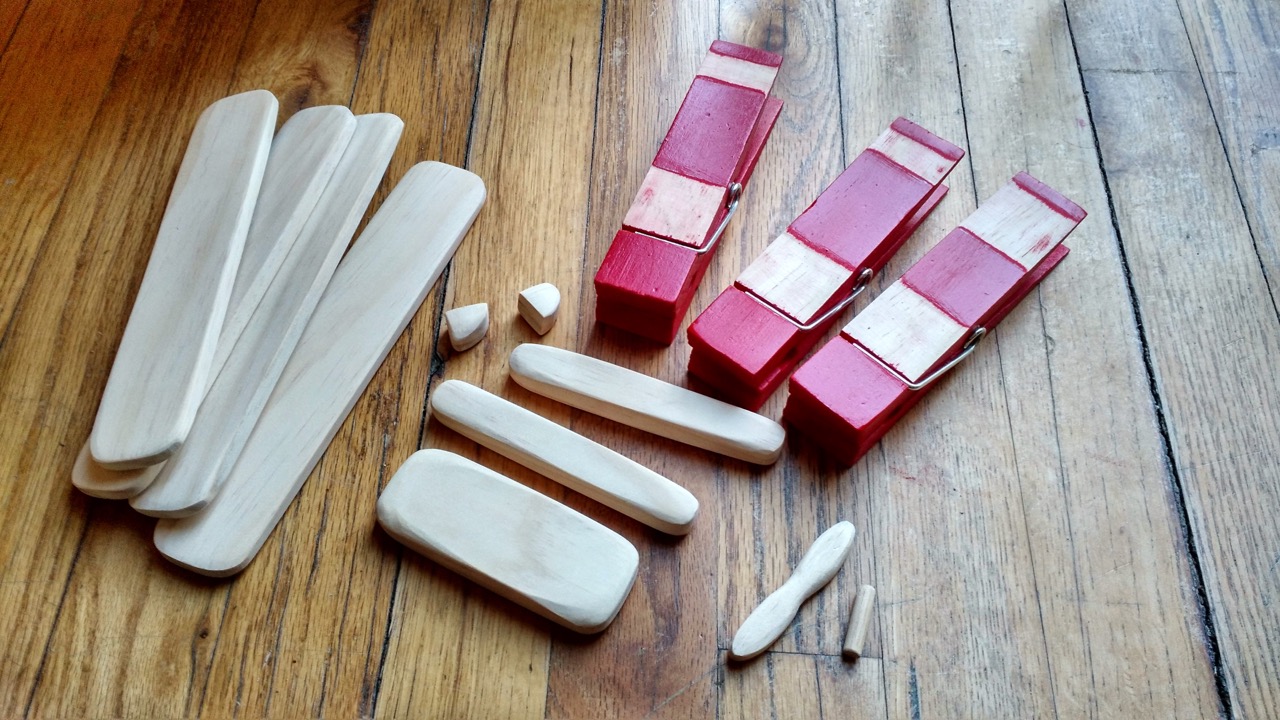 My clothespins were painted so I sanded off the paint in the areas where I wanted to glue my pieces… do the same if you wish.