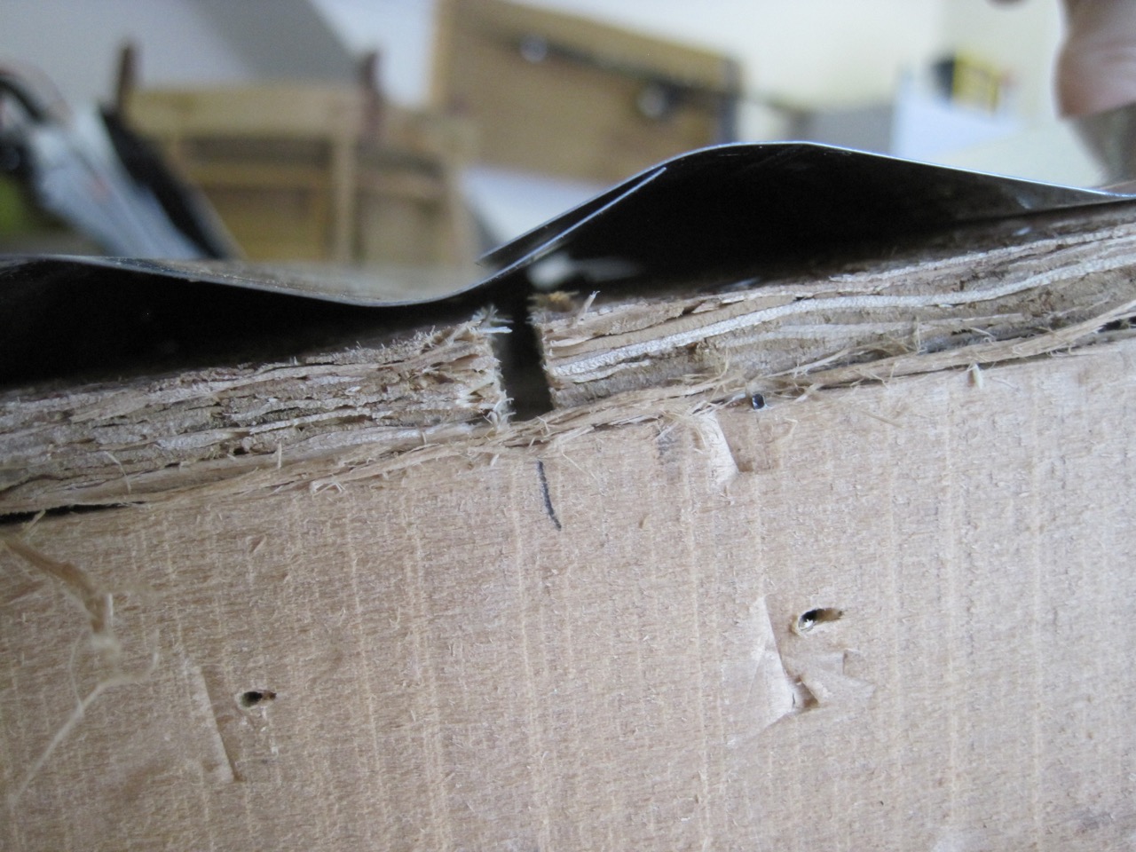 I cut down one side for the back so the roof would slope.  I cut the excess into strips so I could use it for other parts if needed.