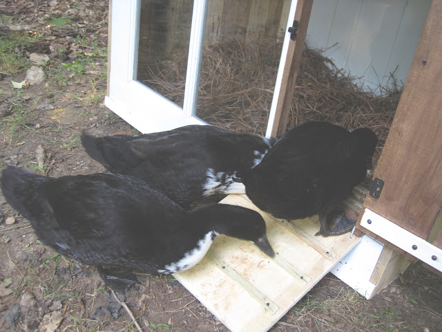 The duck house came into play when I realized they probably weren’t best off with the chickens in their coop laying right under where they roost (poop)… plus they were making it so the ‘deep litter’ method was pretty much impossible. The ducks love to be with the chickens like they were meant to be together but the chickens peck at the ducks and don’t let them eat their food.