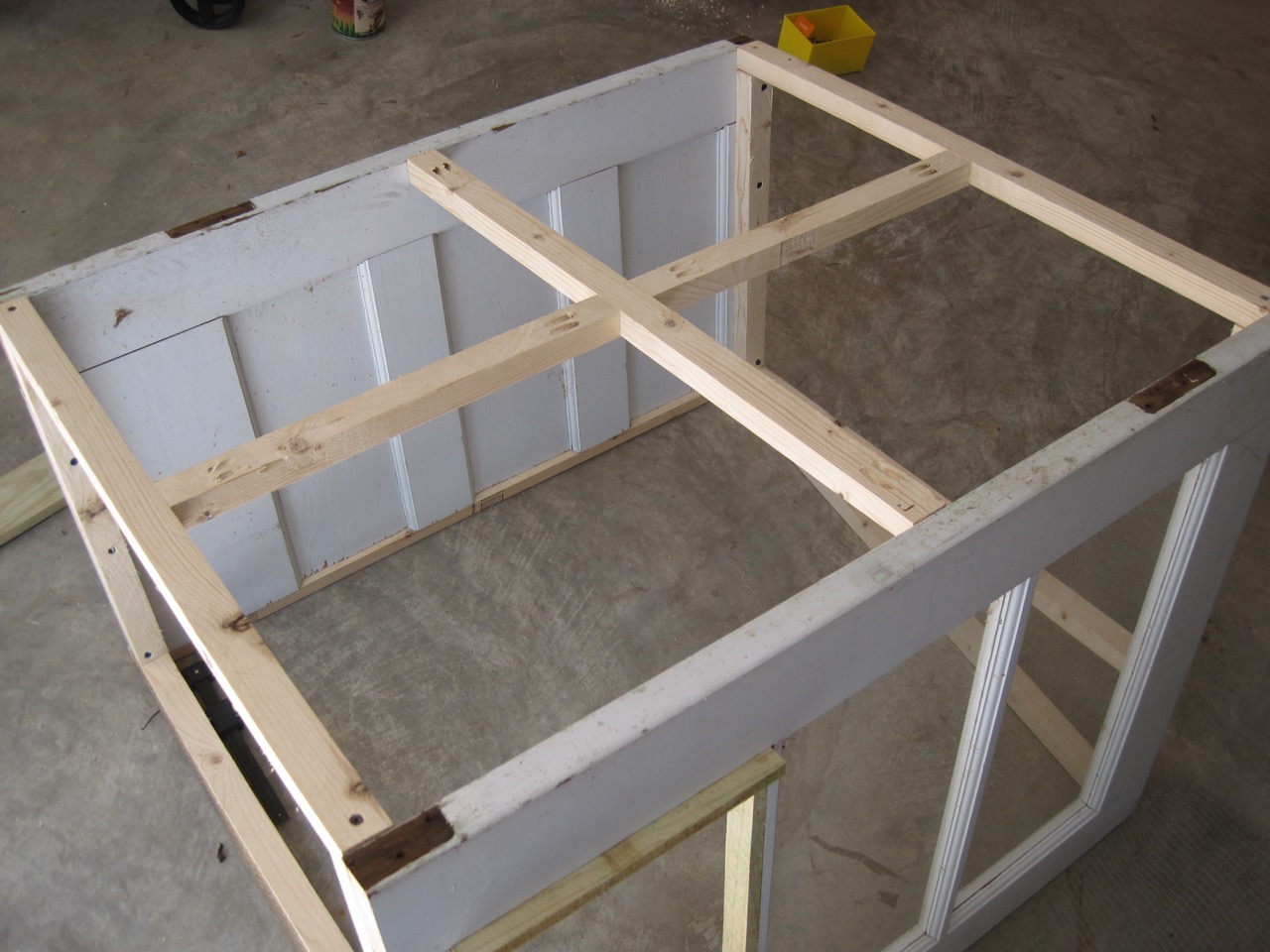 I knew I was going to make the bottom with hardware clothe since the ducks are really dirty and I wanted to make it easy to spray out with a hose if needed. I also wanted it to be partially off the ground so the ducks weren’t getting moisture from the soil (it’s been really wet & rainy here in NC)! I added these cross braces to attach the hardware clothe so it wouldn’t sag.