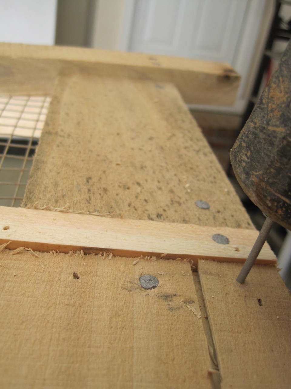 I went back over and hammered in larger nails for sturdiness – but also for a rustic look.