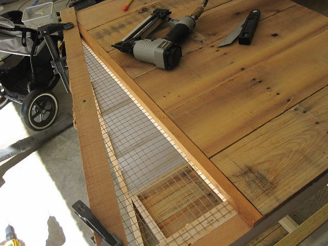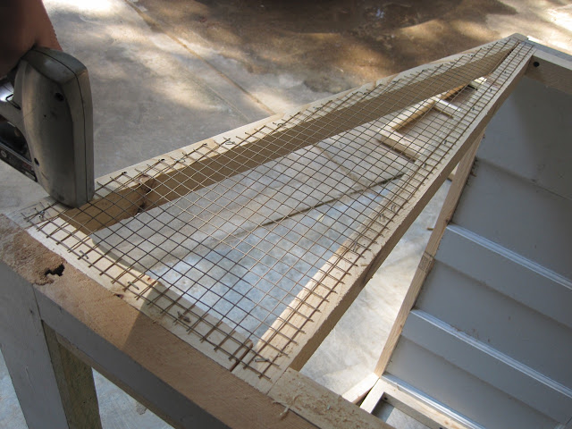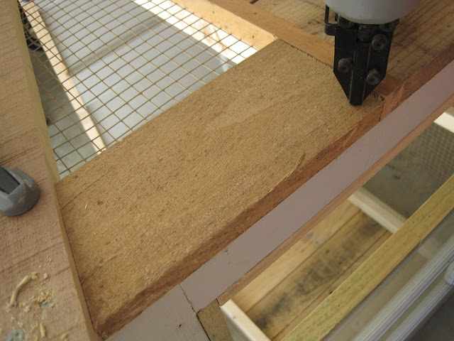… then nailed them over the hardware clothe.  The picket fence is treated and I wanted the treated wood sitting on the dirt ground.  I feel really good that the ducks will be off the ground at least 1/2-inch!