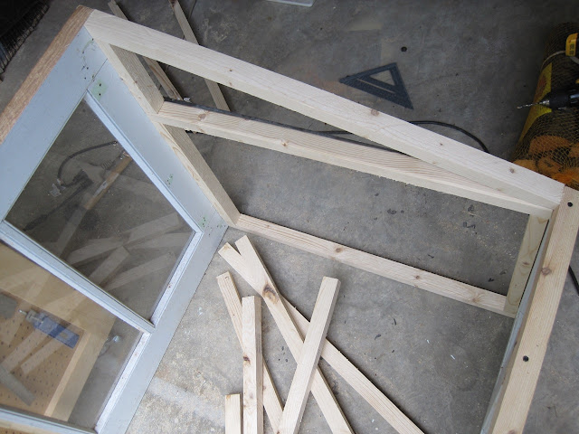 I knew I was going to make the bottom with hardware clothe since the ducks are really dirty and I wanted to make it easy to spray out with a hose if needed.  I also wanted it to be partially off the ground so the ducks weren’t getting moisture from the soil (it’s been really wet & rainy here in NC)!  I added these cross braces to attach the hardware clothe so it wouldn’t sag.