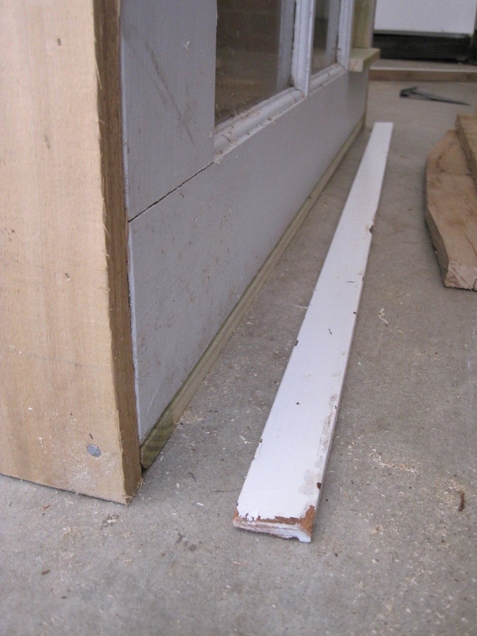 My first thought was to make a doorway out of the broken window pane – I took off the existing trip and added strips for the doorway.