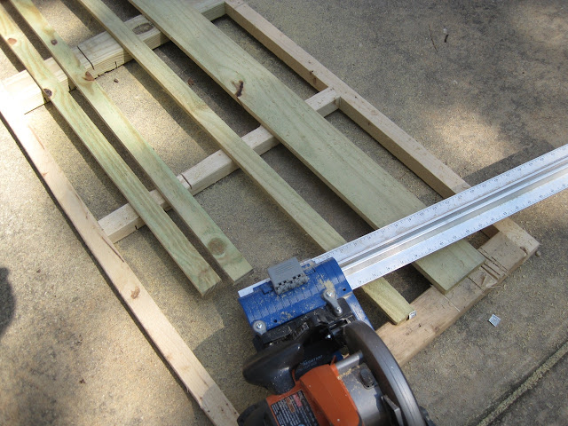 Next I cut up this massive pallet so I could make the sides.  This was a lot of work!
