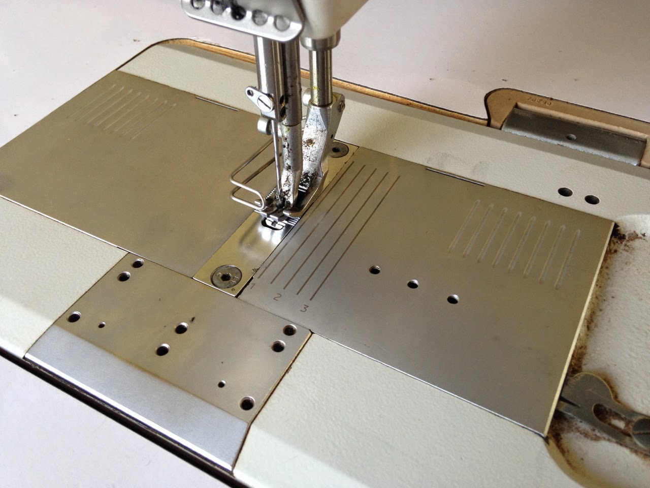 The machine was dirty and there were cobwebs and dog hair all over but most people don’t baby their machines like I do. The guy used it to sew with waterproof thread that had a wax coating and it left a white goo everywhere.