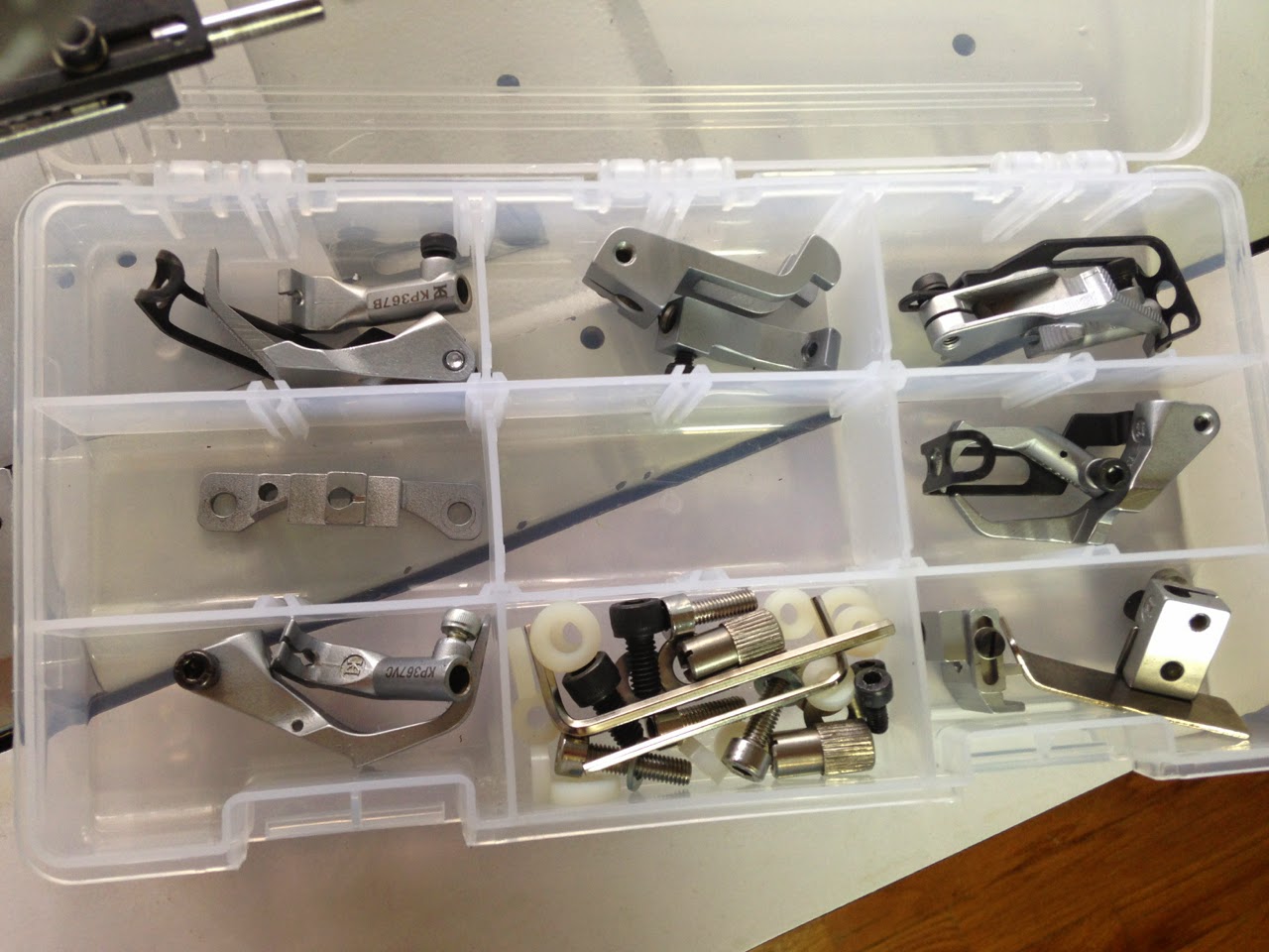 …and various presser feet from Kwokhing. They don’t have many parts for my particular model but I got away with buying feet from other models and they fit. I also got some binders customized and some parts for the binder arm (it didn’t really end up fitting well in the end after many months of waiting but I knew it was a risk anyways). I contacted Adler to see how much a binder arm would be and they said $1,200 and that didn’t even include the price of the individual binders or feed dog/presser foot! I got all those from Kwokhing for around $200. They have awesome prices and high quality products (though, I wasn’t impressed with the LED lights I bought).
