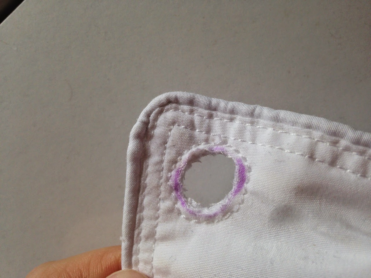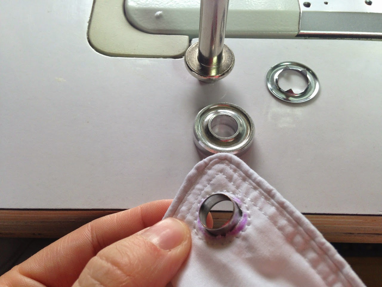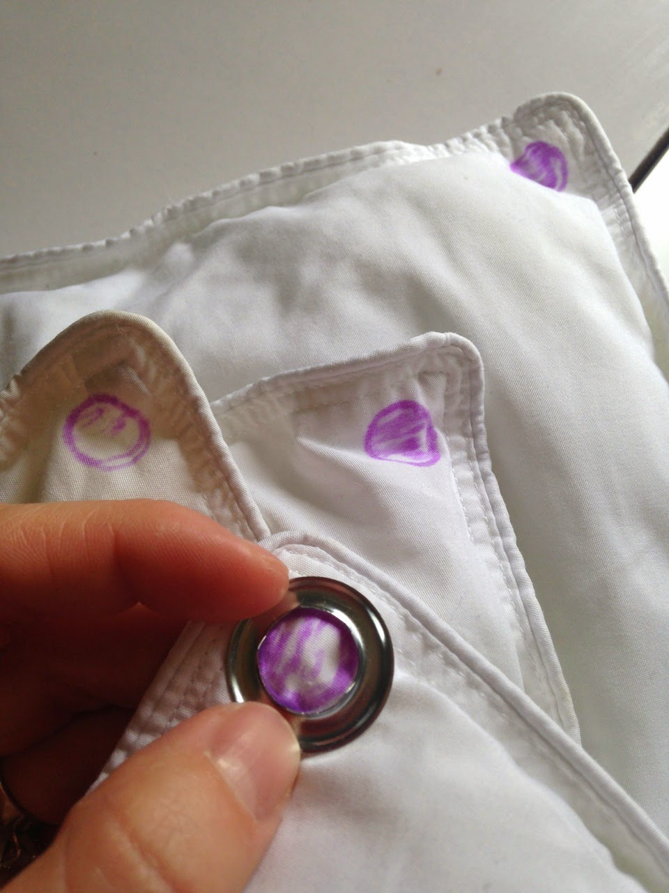 I used a fabric marker to mark the center hole of the eyelets on each corner of my duvet. Give your eyelet a little space from the edge so it has enough fabric to hold onto.