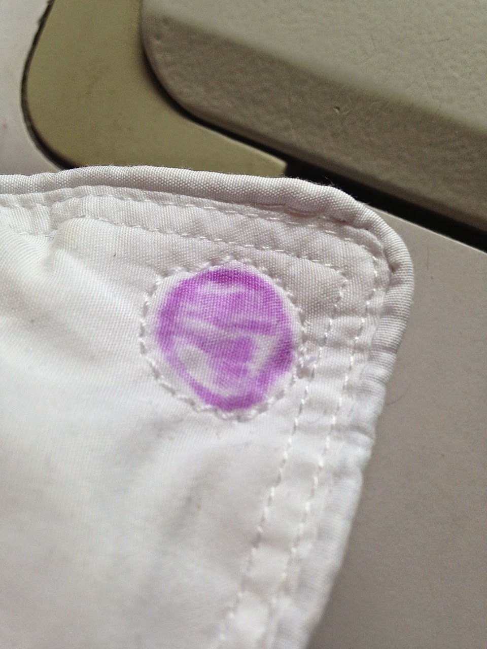 Sew a circle around your dot, about 1/8″ away from the edge of the marking.