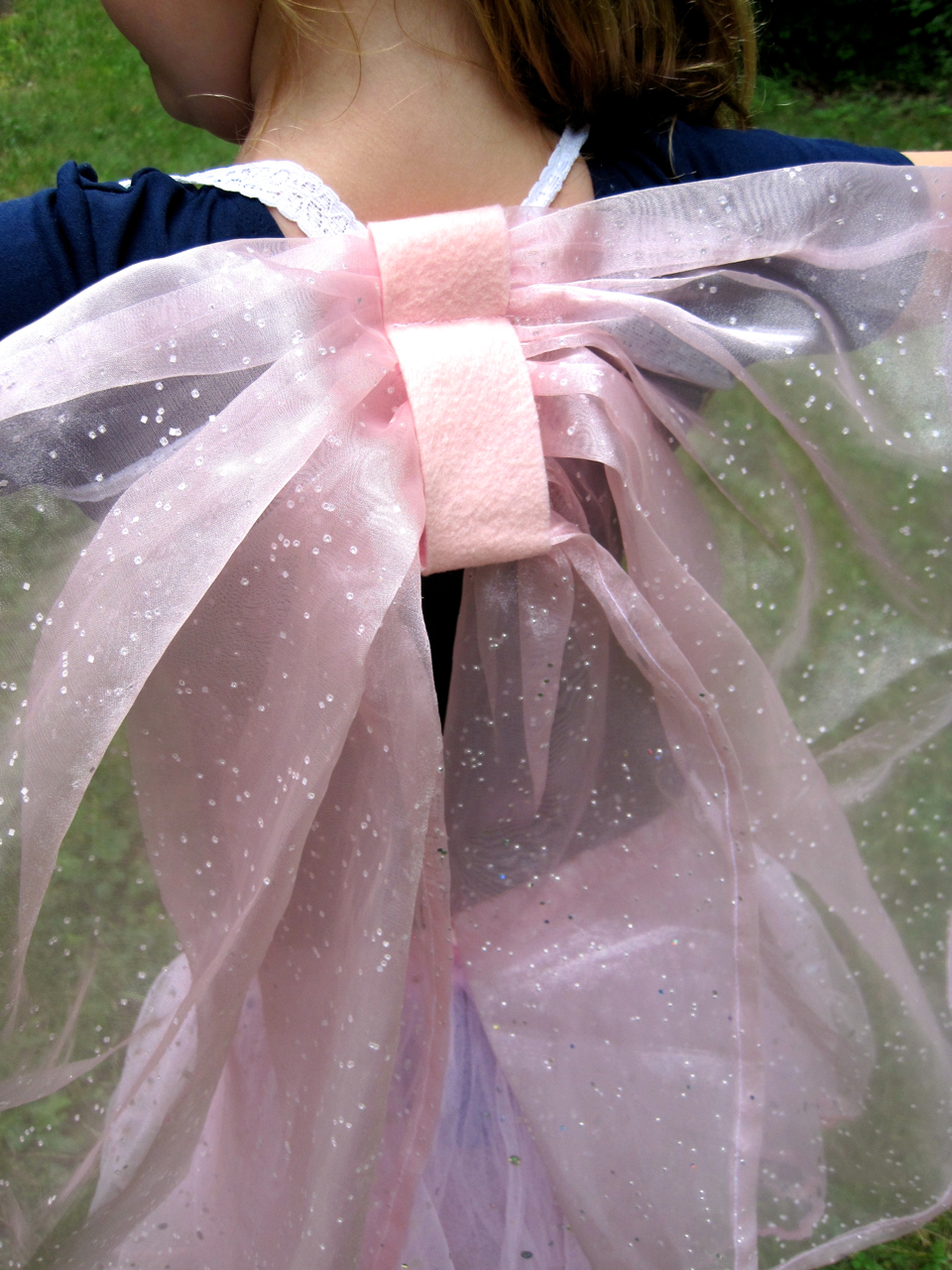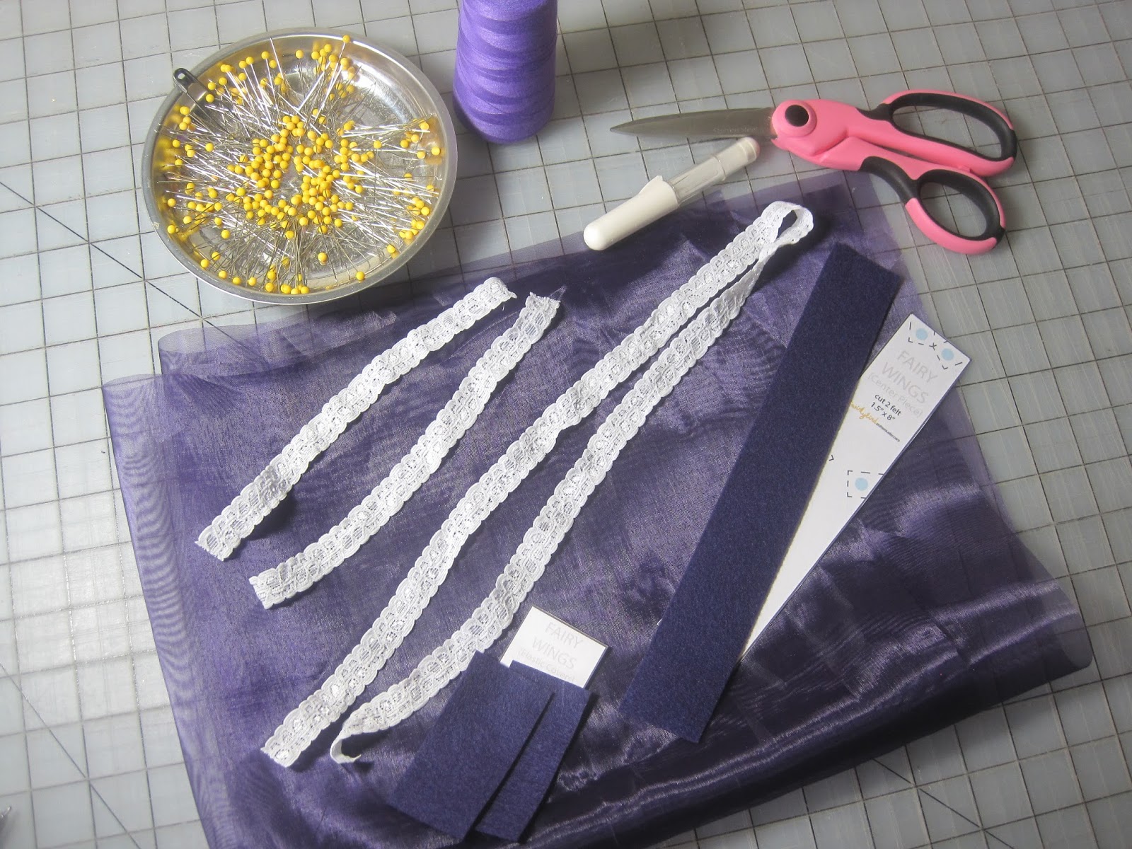 I was browsing Pinterest for “easy sewing project” to make for one of my sewing classes and I found a picture of fabric wings with elastic. I thought it was a great idea since the store bought kind with wire always break or one wing flops over to the side – ugh!