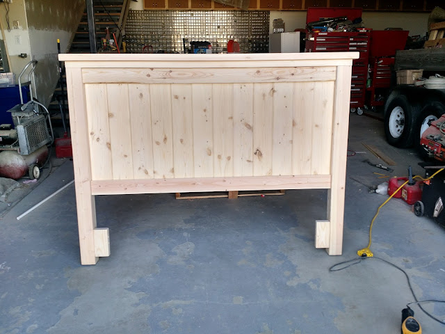 While visiting my family in Utah my mom was trying to decide how to make the guest room look better. I immediately told her “I’ll make you a headboard!” I’ve had my eye on the farmhouse style bed plan from the Ana White website and was excited to try it out. I didn’t make the whole bed frame, plus I made a few tweaks of my own and will highlight them below. For the wood I spent about $65 and another $40 for Stain and Polyurethane.