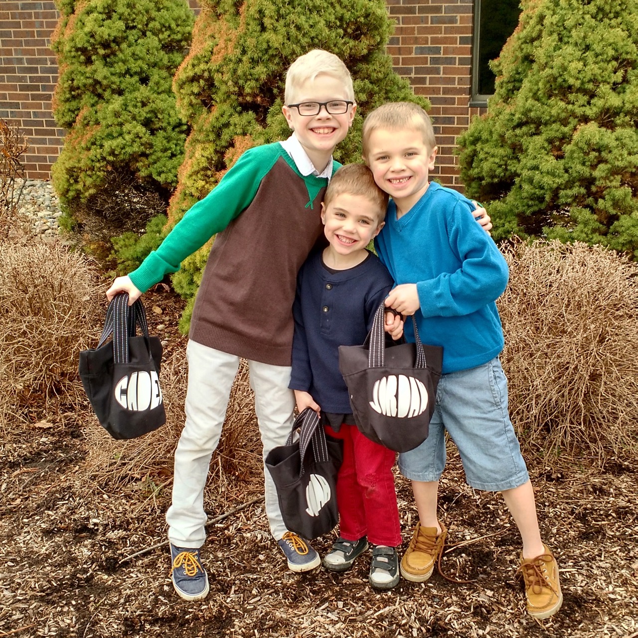 I made my 3 boys their own trick-or-treating bag and put their names on the front which I like better than any “cutsy” Halloween design I looked at. I’ll share how I did it so you can do it too. It’s relatively easy, cheap and it looks like something you’d buy from the store.