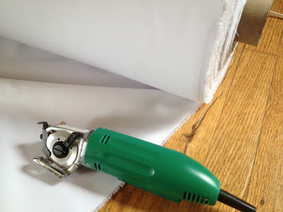 I ended up buying this cutter online from Rowley Company (you need a business Tax ID # to order). It was just under $100 and I am extremely happy with it! It cuts through fabric like butter! Instead of cutting with scissors for 20 minutes it only takes 5 minutes!