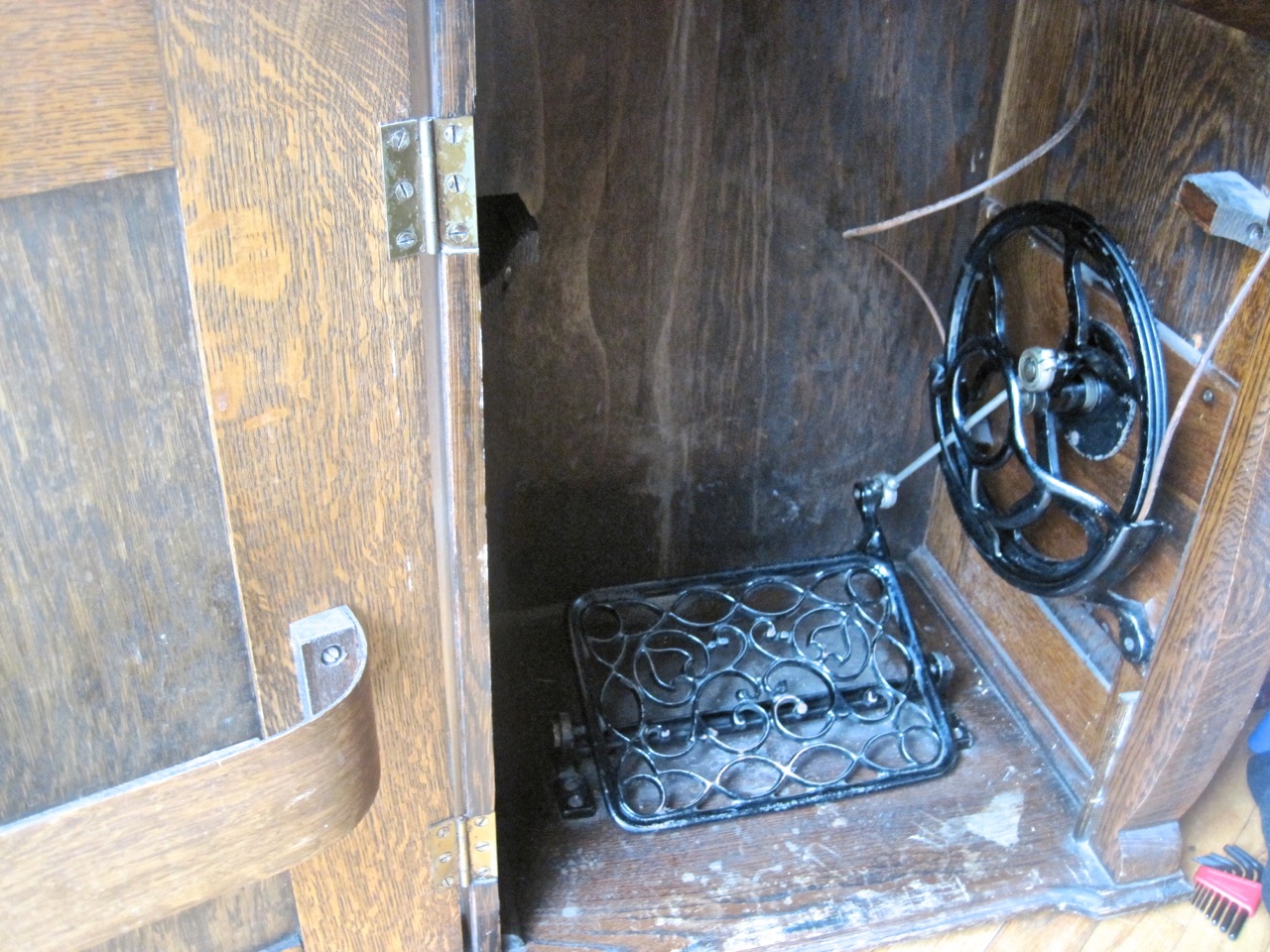 I wrote a previous post about this treadle sewing machine and how I picked it up from the thrift store for $15.