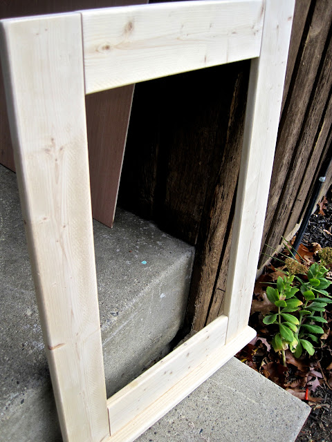 Step 3 – Flip your wood frame over and align your 1×2″ board on the short end of the frame, flush with the backside. Pre-drill holes and screw wood screws through the 1×2″ board to the frame.