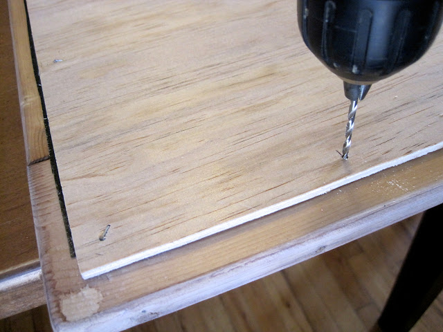Step 6 – Cut your contact paper to the size of your plywood. I started on one short end and slowly peeled off the back while I smoothed it onto the plywood. TIP: make sure your plywood and working space is SUPER clean – any little piece of lint or dirt that gets in between the paper and board make a very noticeable bump!