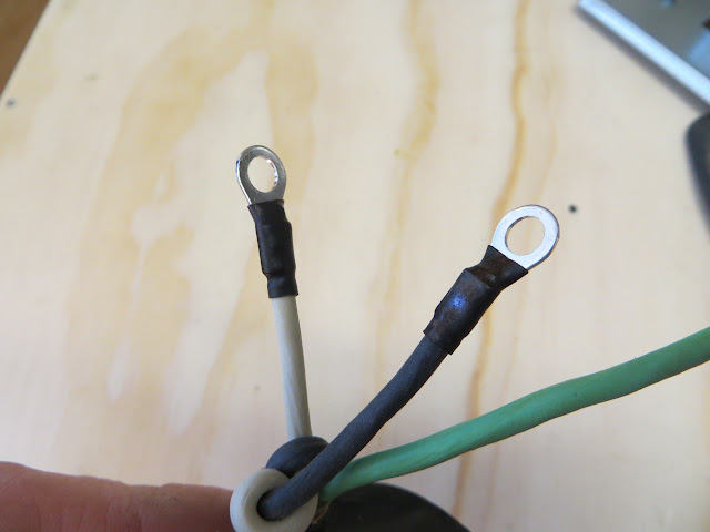 Attach neutral/hot wires to studs (mine go between 2 brass washers and then the last bolt locks them in place).  Remember it doesn’t matter what wire goes to which stud on MY motor – but yours could be different!
