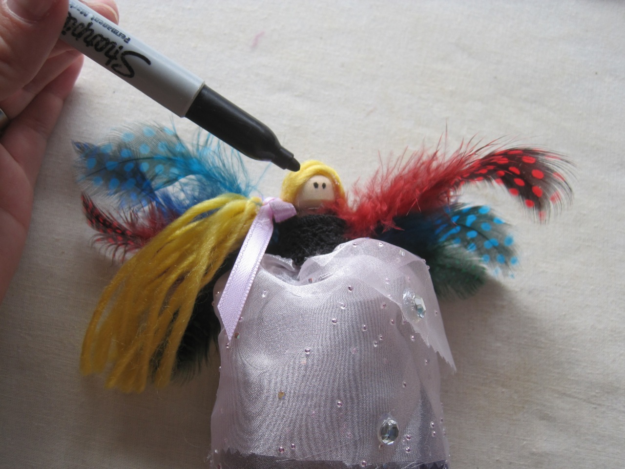 …and finished it off with a big rhinestone to hold the feathers in place better.