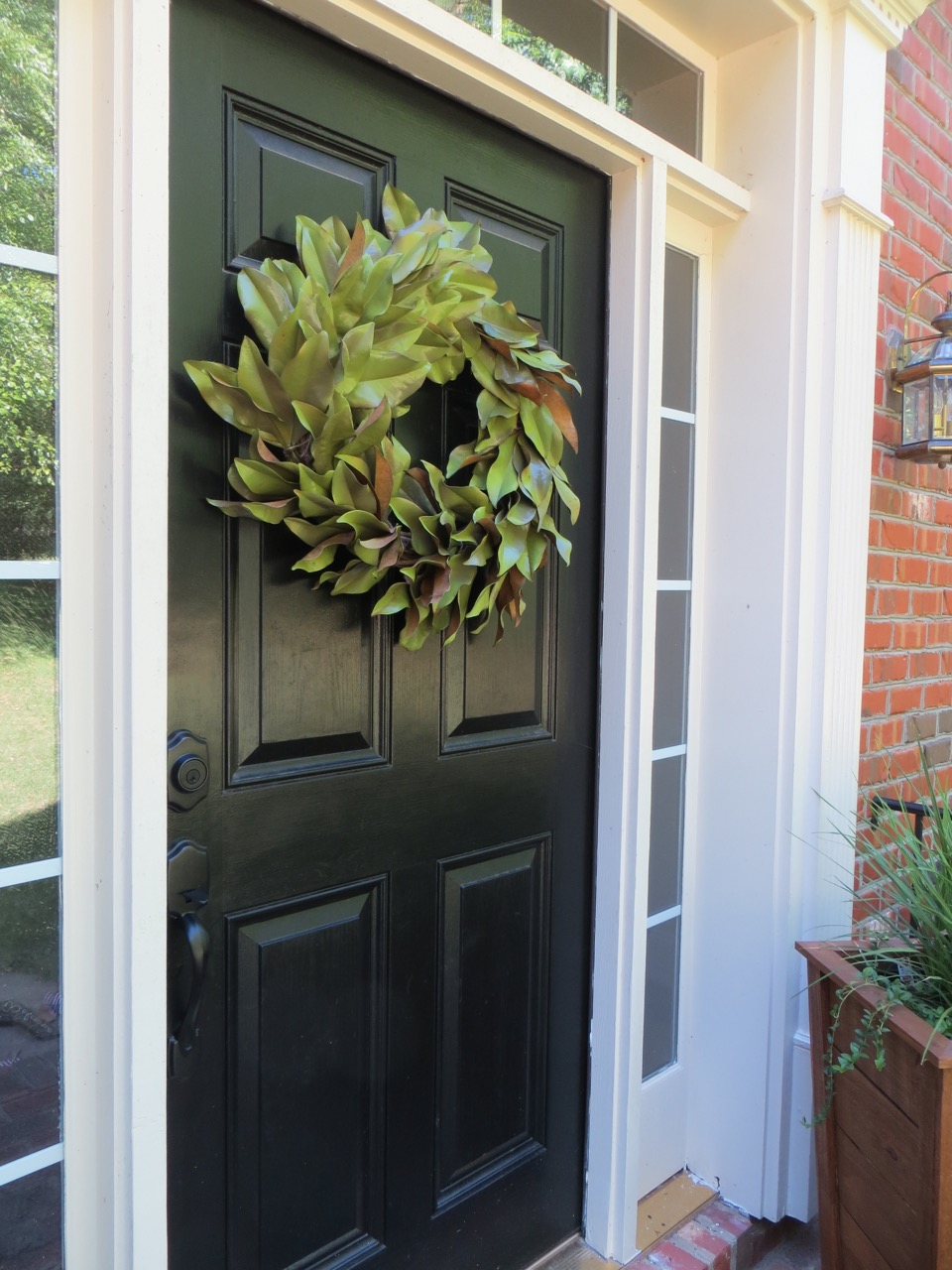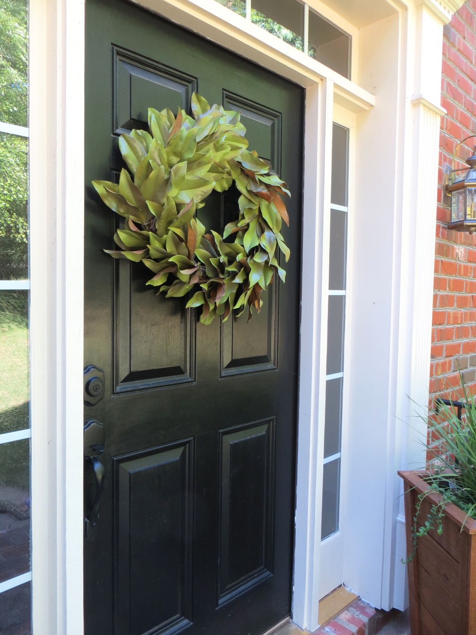 We have a magnolia tree in our backyard and each week we’ve been raking the fallen leaves and dumping them inside the chickens’ fence. I’ve been noticing how they haven’t crumbled or disintegrated like other types of leaves. Since I’ve been on a search for a wreath ever since we moved into our house this was just what I needed – realizing that magnolia leaves are the perfect candidate for a homemade wreath!