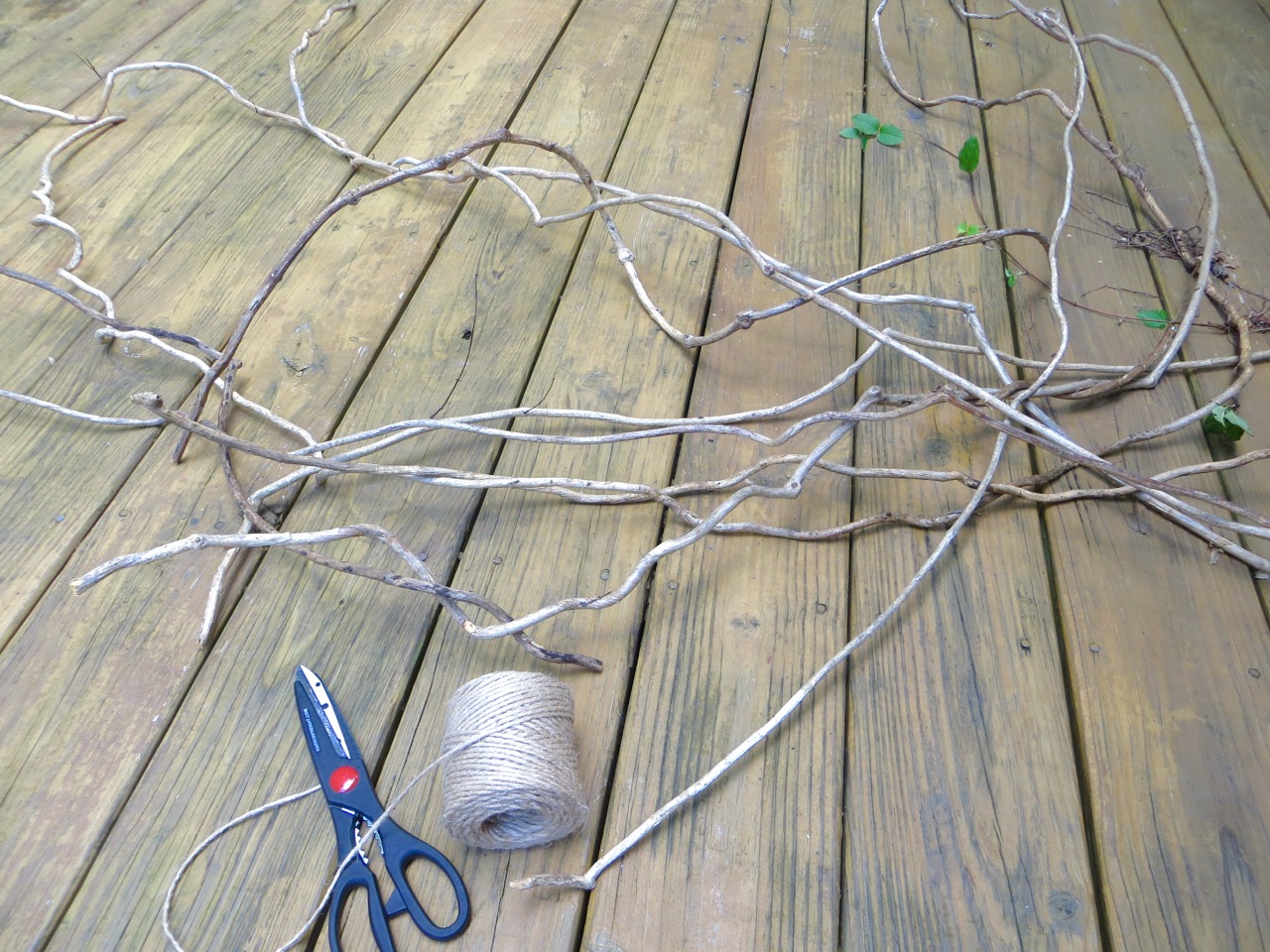Oh, look! Right in our backyard! VINES! I gave a little tug and they fell right at my feet just asking to me made into a pretty decoration.