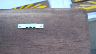 TROPHIES: Drill holes for your screws in the main (on the 4 1/2″side) and base pieces (on the large flat side). Screw your screws in the base pieces just until they poke out a little – this makes it easy to match up the holes to the main pieces. Now you can screw the screws through both pieces together.