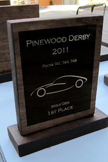 I don’t have a picture for the nameplates that I have put on the ARROW OF LIGHT awards, but they look just like these but smaller. I attach the name plates under the arrow. As for the TROPHIES, I ordered 10 nameplates (1st, 2nd, and 3rd place for the Wolf, Bear, and Webelo Dens, and a Best-In-Show).