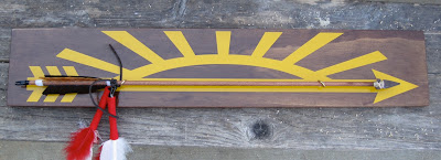 ARROW OF LIGHT: Assemble your arrow kit (you can buy at the Scout Office) and place over cup hooks. Turn the cup hooks inward so they clamp down on the arrow to prevent it from shifting around.