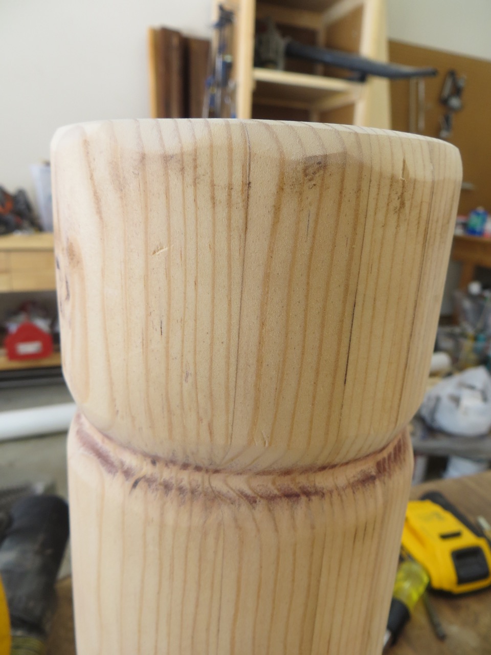 The wood was dry and splitting on the ends so I cut some from the top and bottom – especially the uneccesary hole on the top. I drilled new holes in the bottom for the cord to pass through.