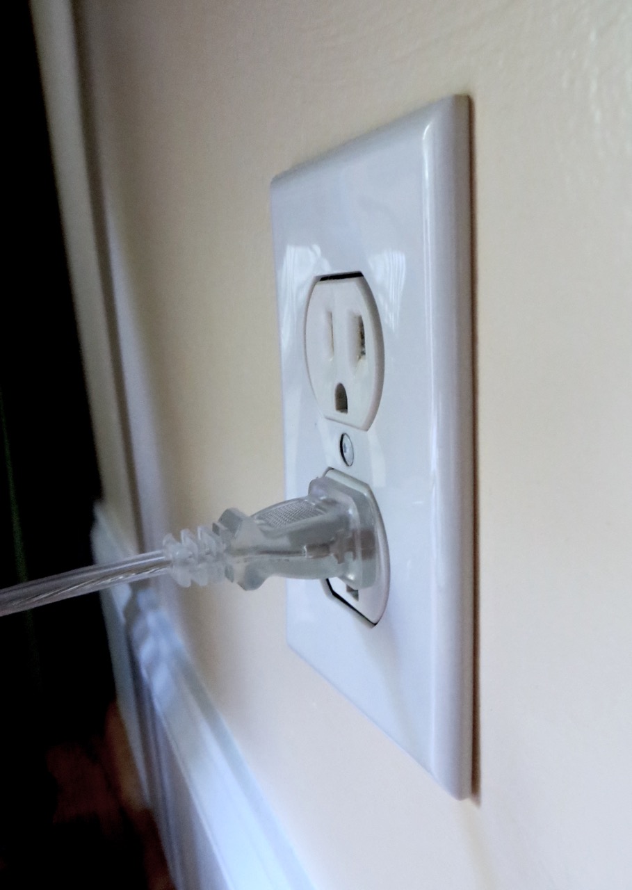 Why re-wire? Most lamps I see at the thrift store have ugly-flimpsy-old brown cords that are unsightly. I like having clear cords so they don’t stand out when they’re plugged into a wall!