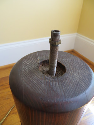 Push wire through lamp base and center of threaded rod. Attach any hardware that was on bottom of rod before you took it apart. Mine had a bolt and large washer.