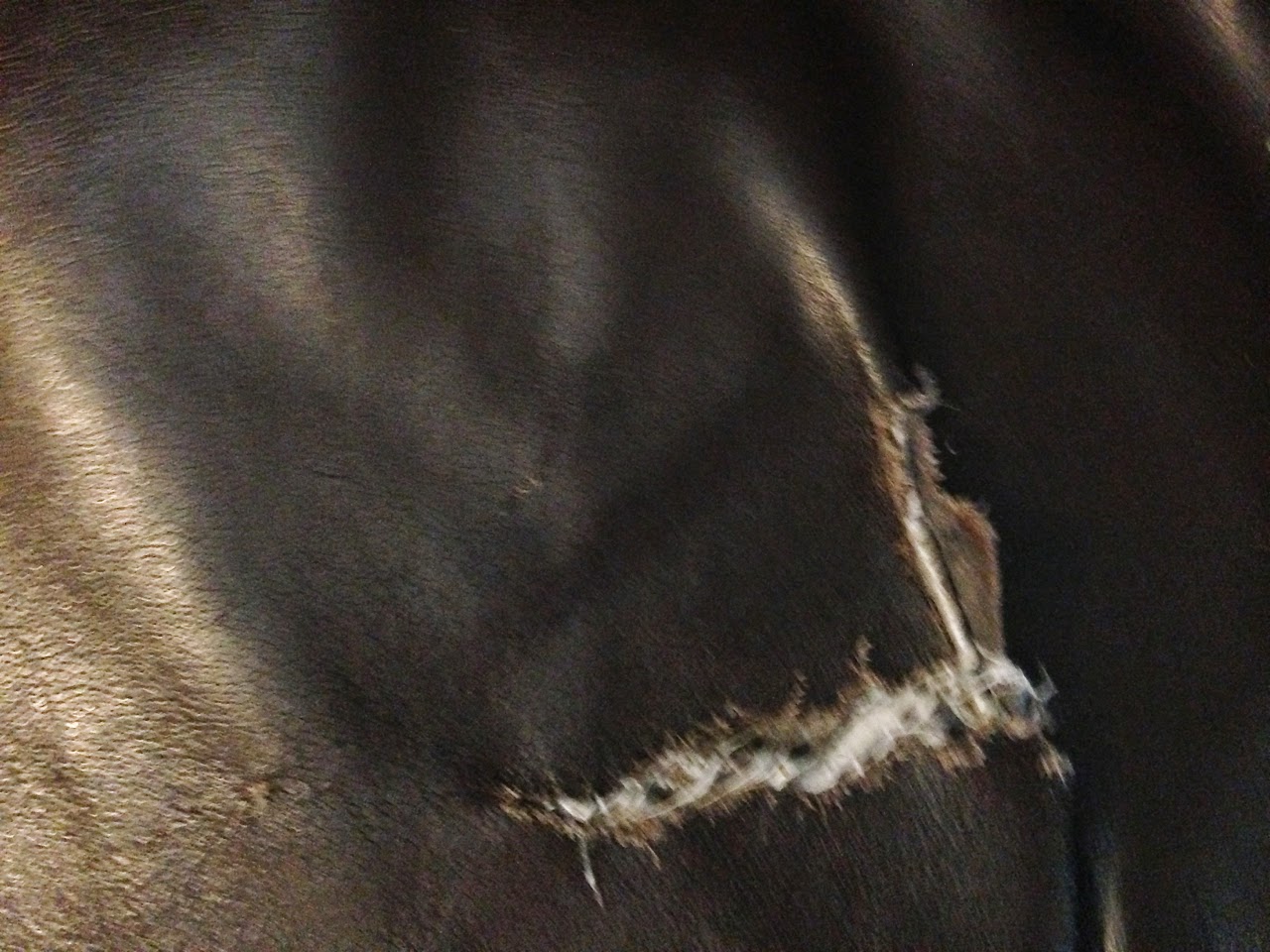 Then one of the kids decided to cut a 1-inch slit in the arm rest and a few days after another boy thought it would be cool to pull on the slit to make it a nice-big flap.