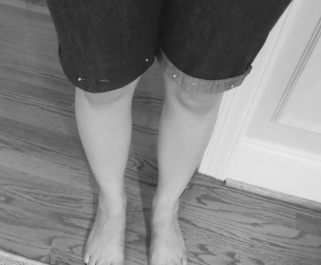 Here I’m trying to decide between a regular hem and a cuff. I’m going to go for the regular on these shorts and add some pleats after hemming so they’re not so baggy.
