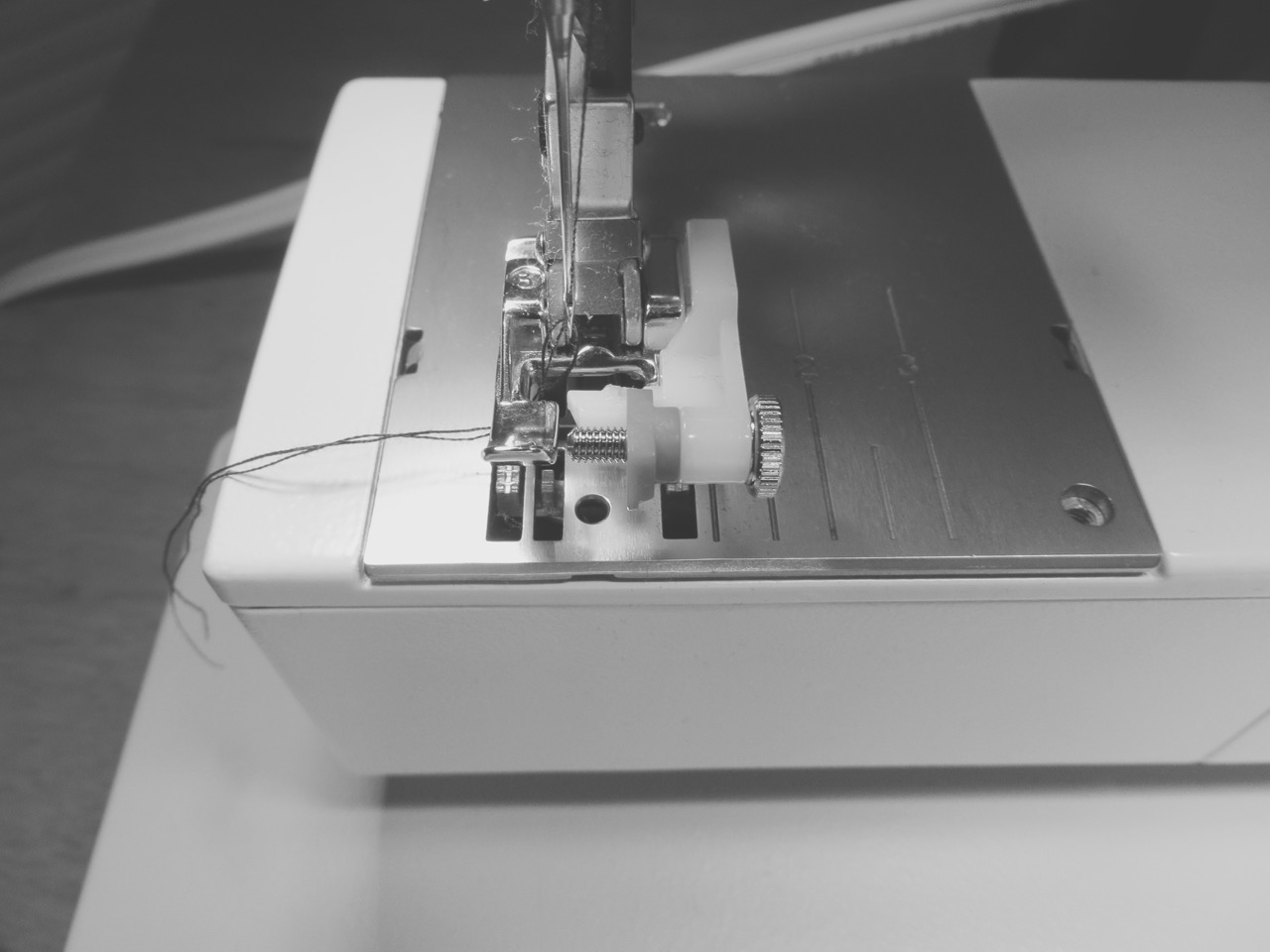 It’s important to pick a thread that isn’t noticeable. To find the best match you’ll want to compare a single strand to the fabric. I chose the grey color on the left because it matches the best with the underside of the fabric where I’ll be stitching.