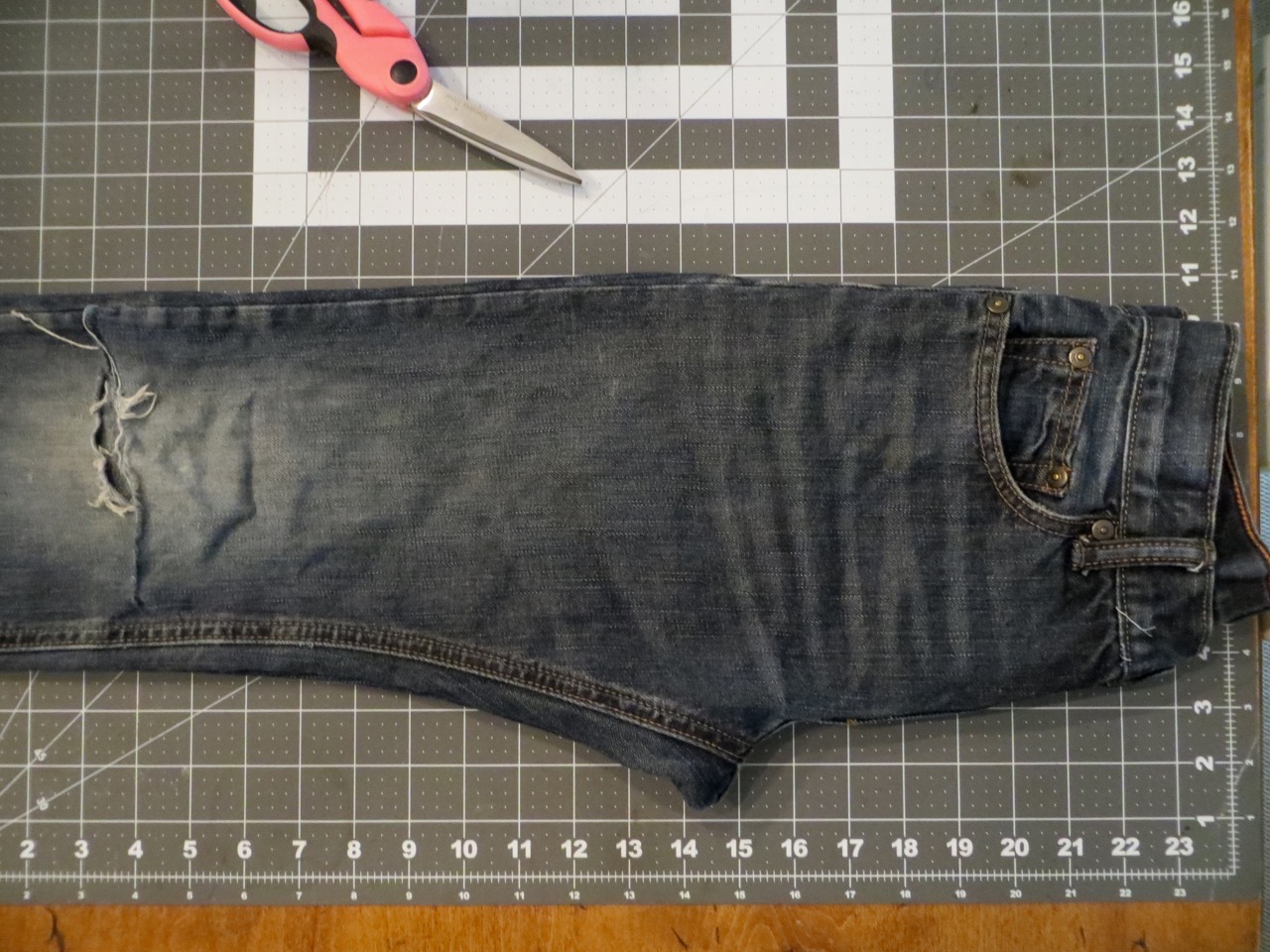 Save the cut offs for a quilt! – I’ll have a full-sized quilt at the rate these kids wear our their pants 🙂