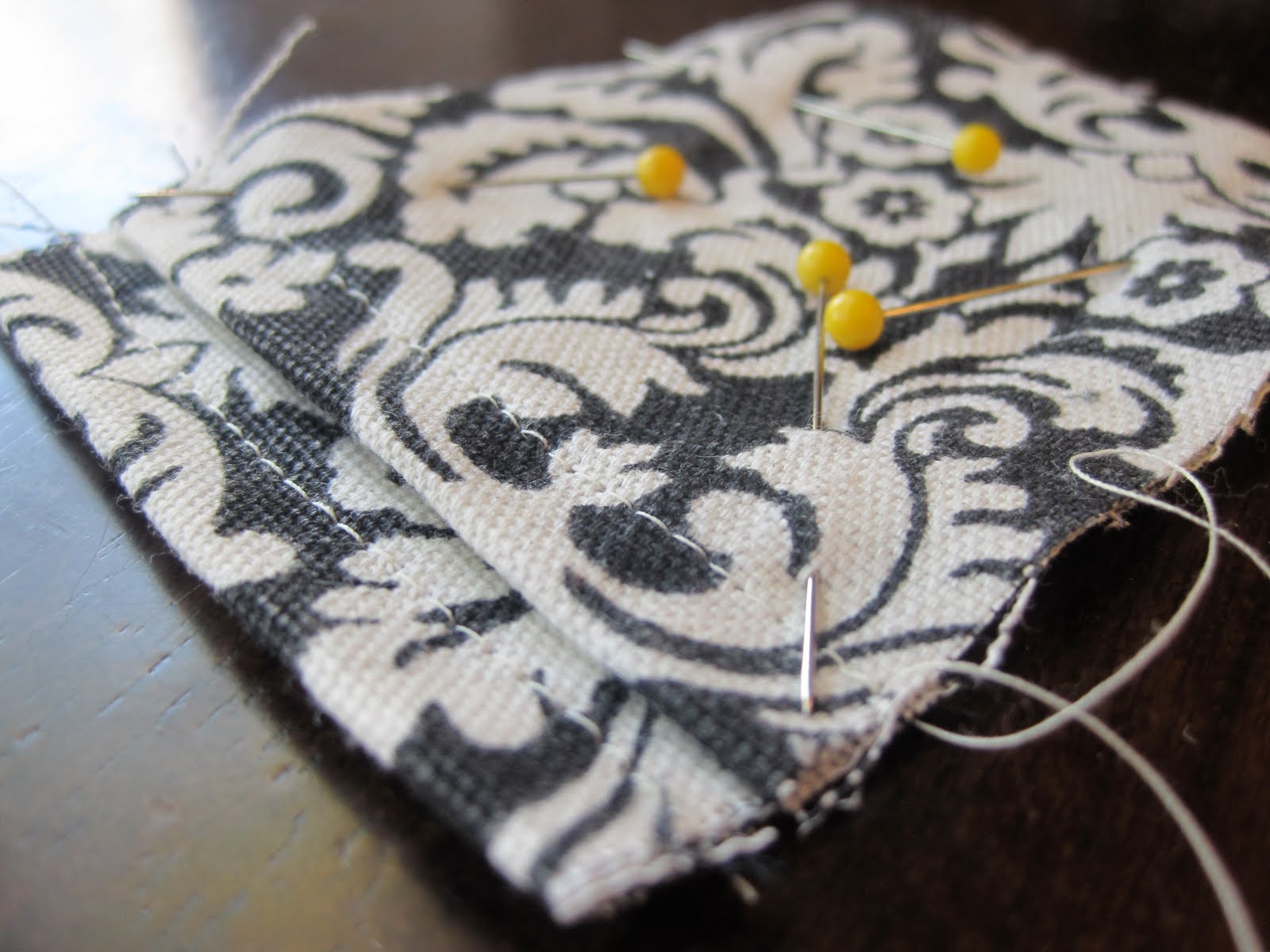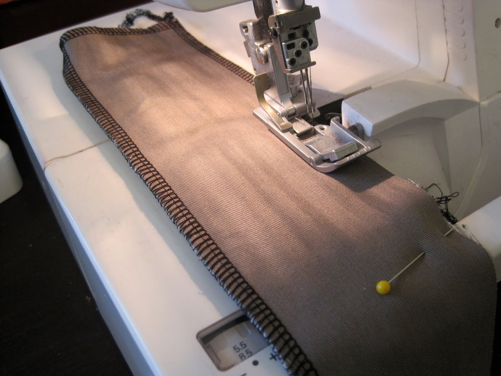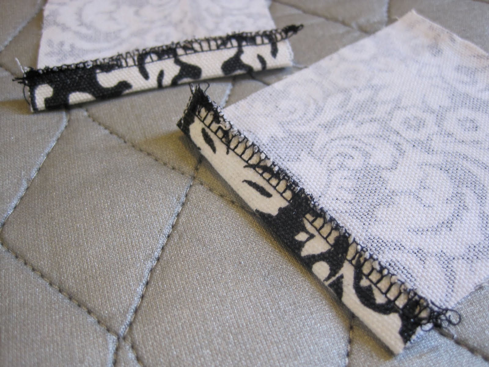 Edge-finish your pockets by sewing across one short end and press down flat 1/2-inch.
