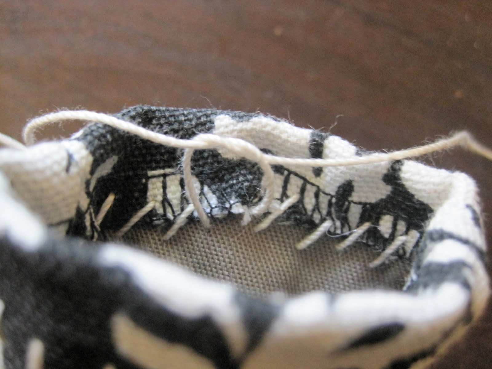 Using a needle and string (or thread), hand-stitch ends down. I like the string because it’s bulky and original looking.