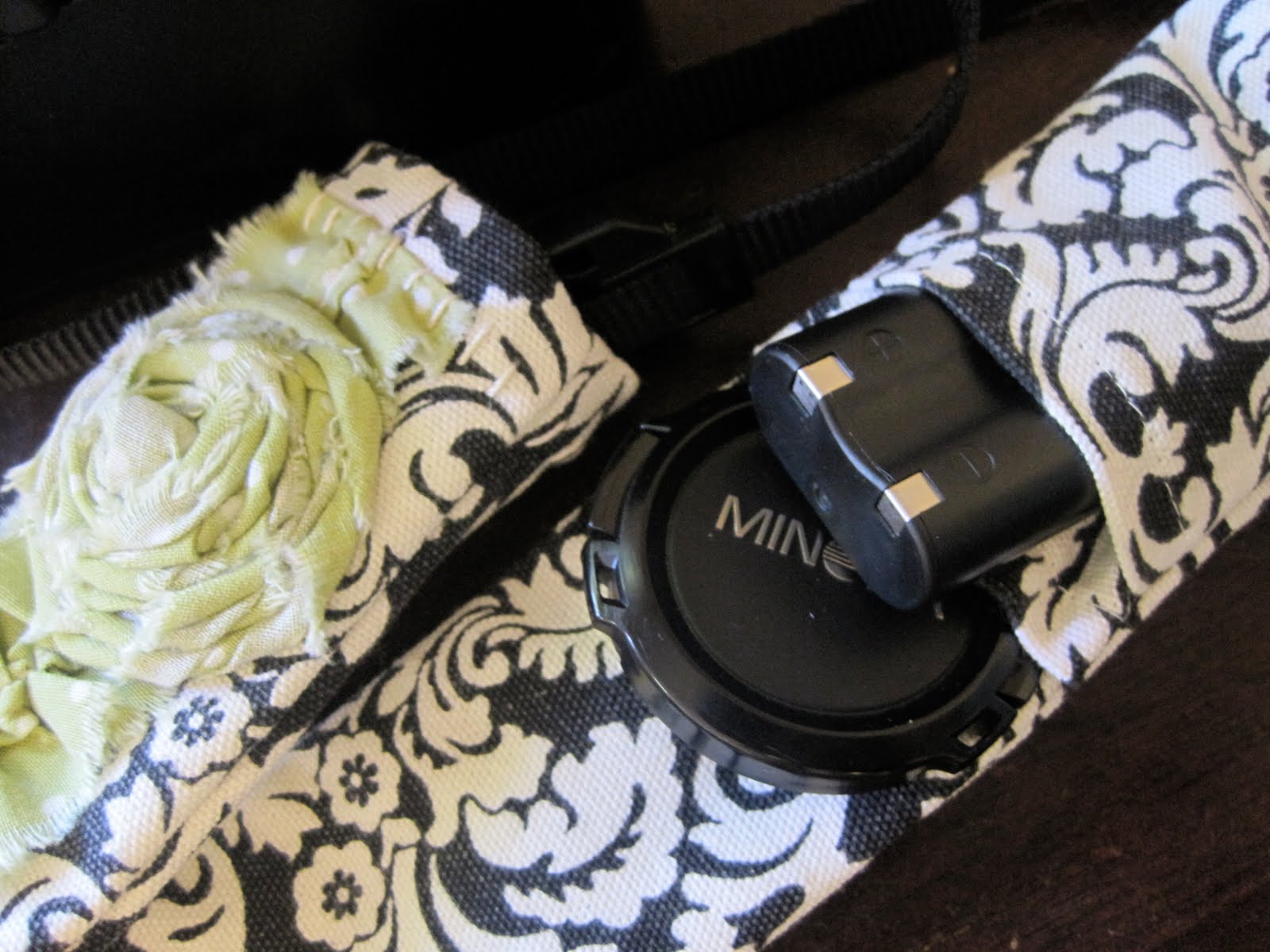 These strap covers are not only cute (how can you resist the ruffle and flower), but they’re cushy and have a place to put your lens cover and an extra battery.