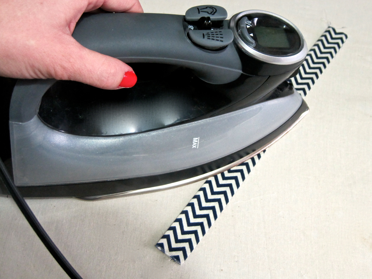Flatten your fabric strip with seam edge pulled out to one side. Iron.