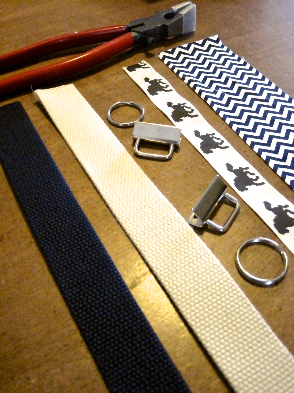 – Keychain (FOB) hardware; clamp (1.25”-wide) & split ring