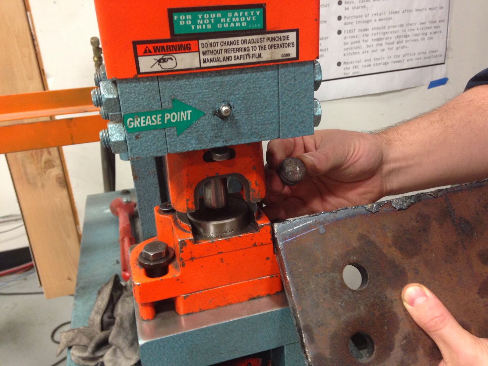 I can’t remember what this machine was called but it applied 40 tons of pressure to this 3/4″ thick steel and punched out this hole.. just like a paper punch! I couldn’t believe it!